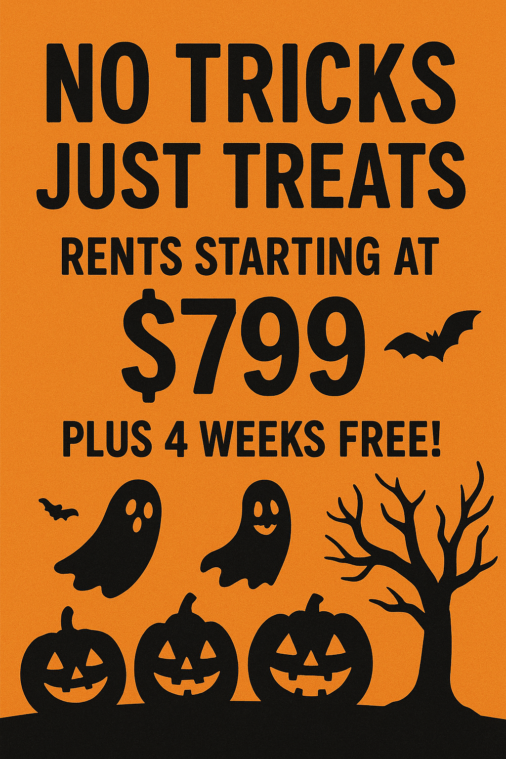 NO TRICKS, JUST TREATS Rents starting at $799! + 4 WEEKS FREE! 🎃